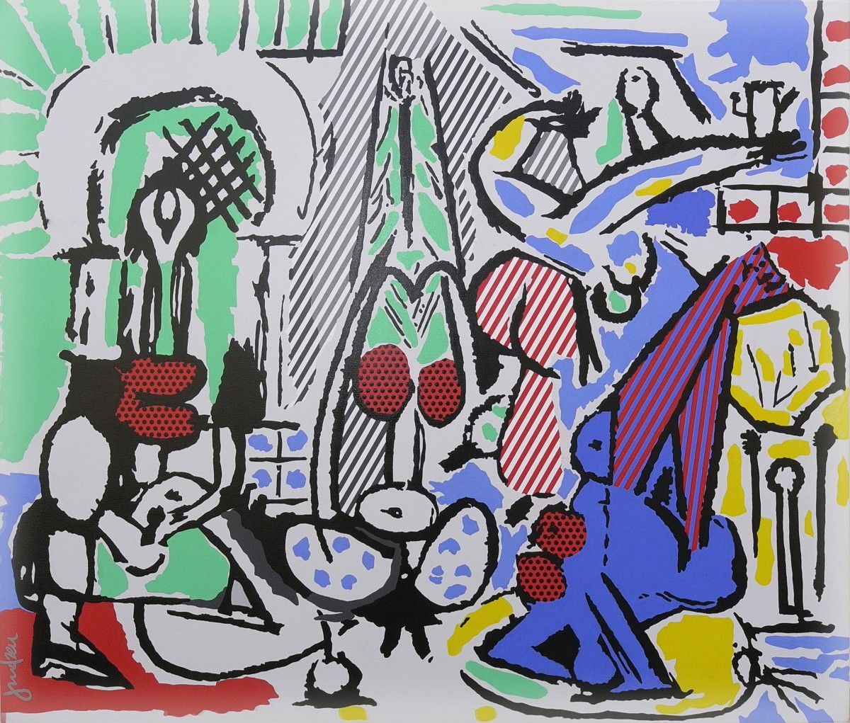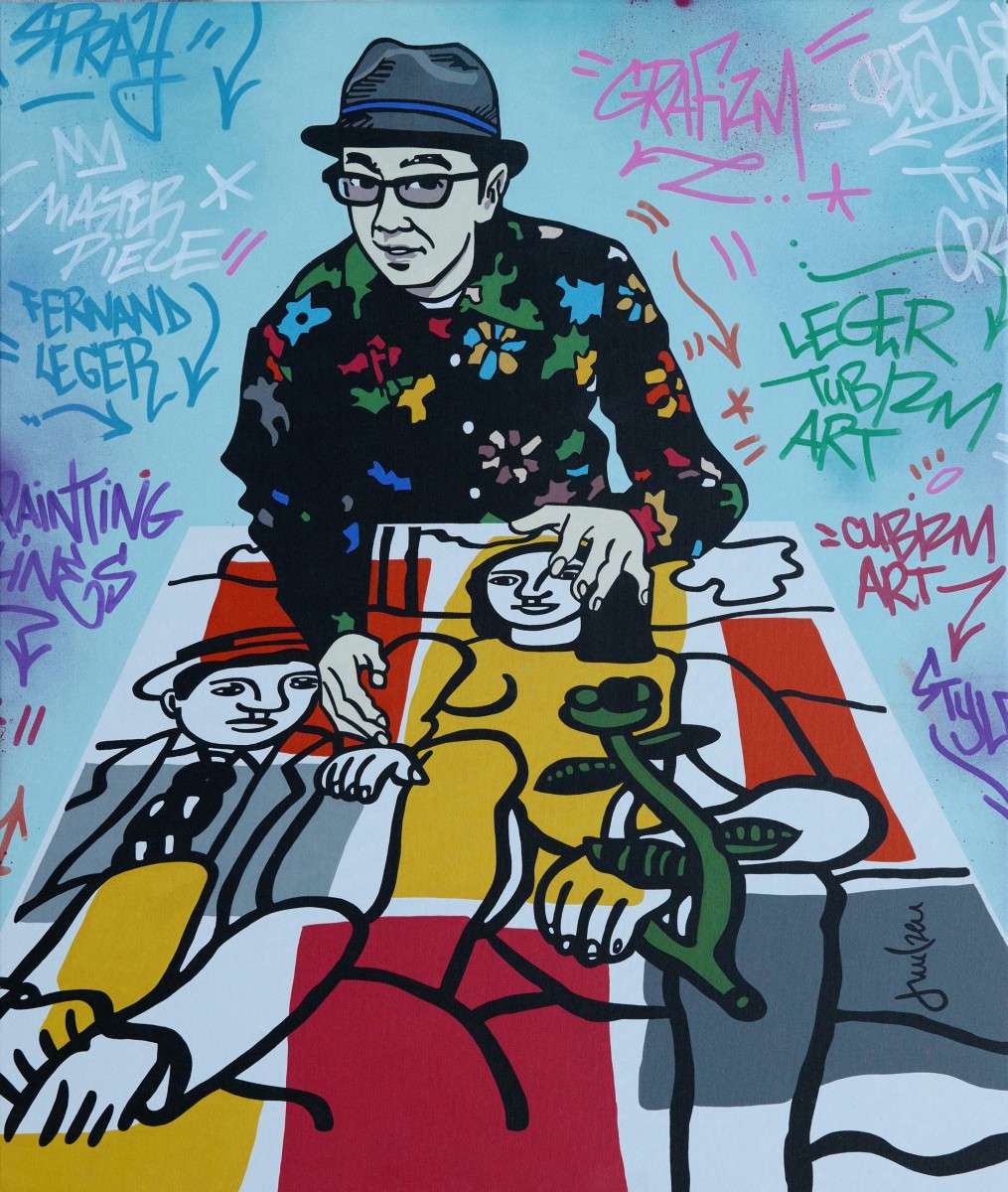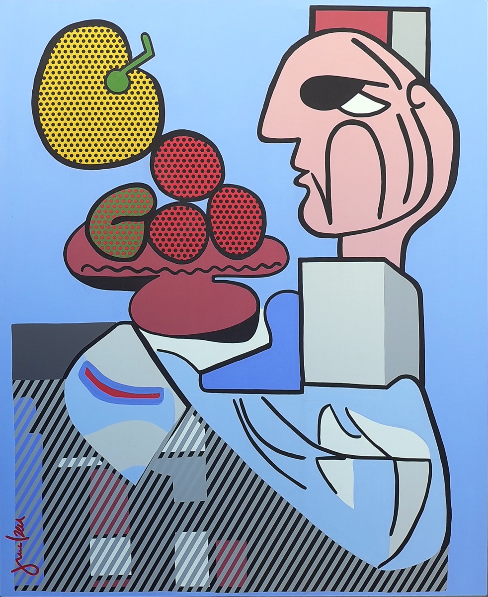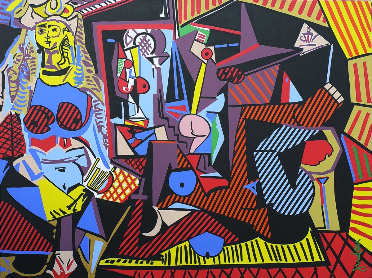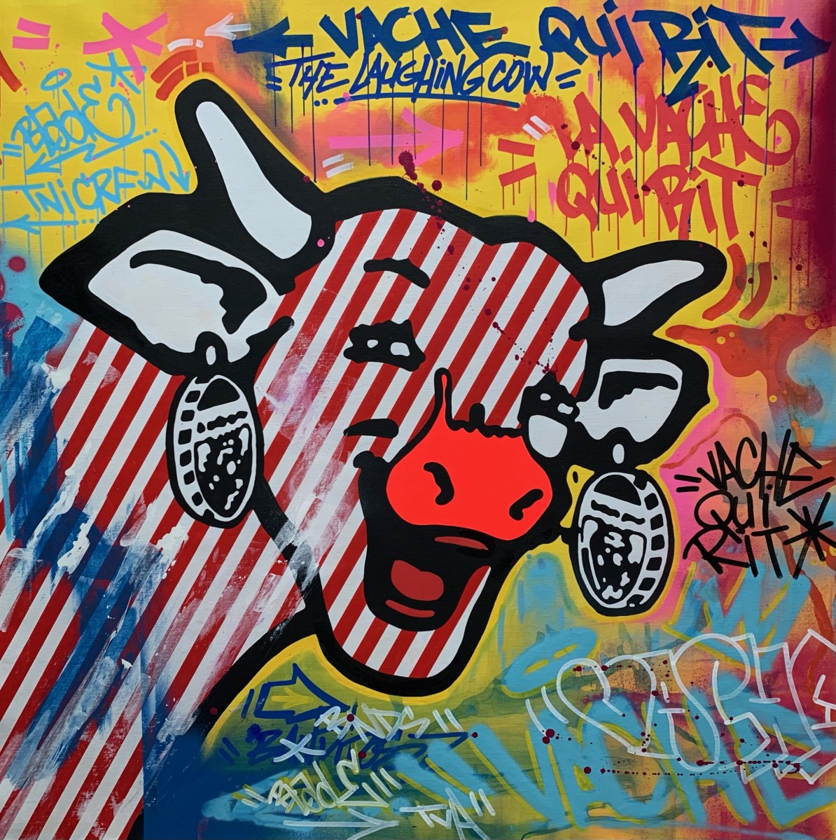 Il revisite en leur rendant hommage des tableaux de Mondrian, Léger, la série des Femmes d’Alger de Picasso. Il réinterprète le logo de la vache qui rit en variant les couleurs.