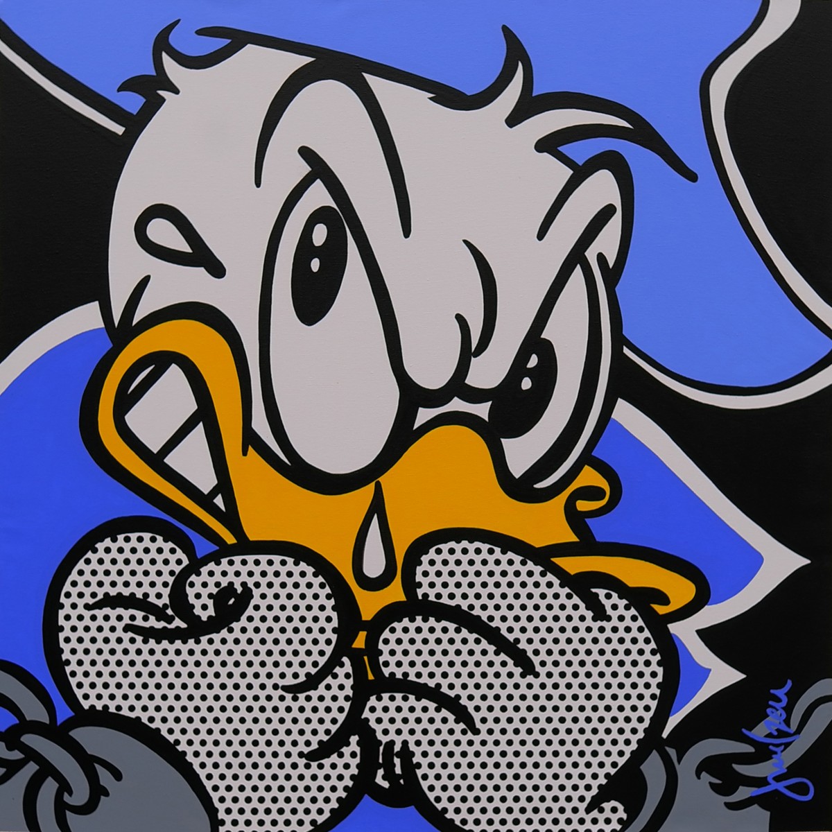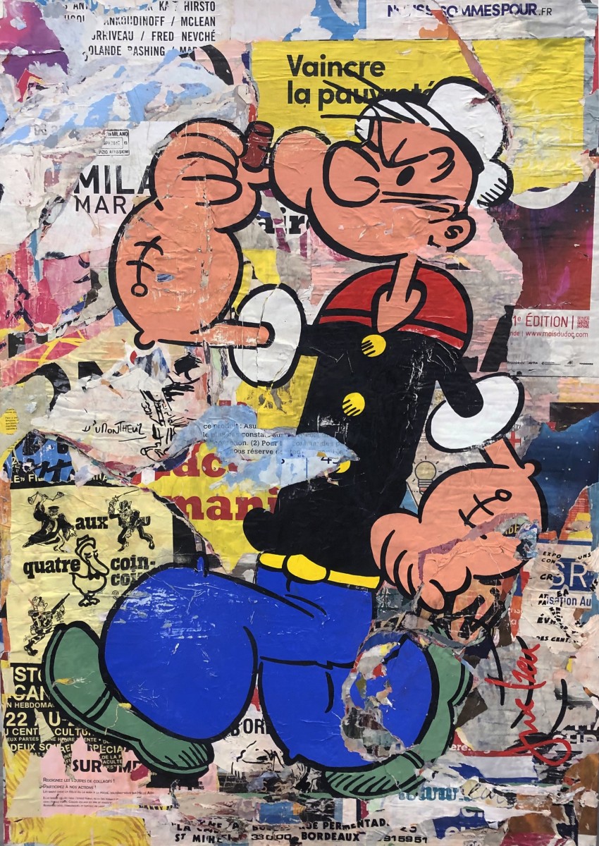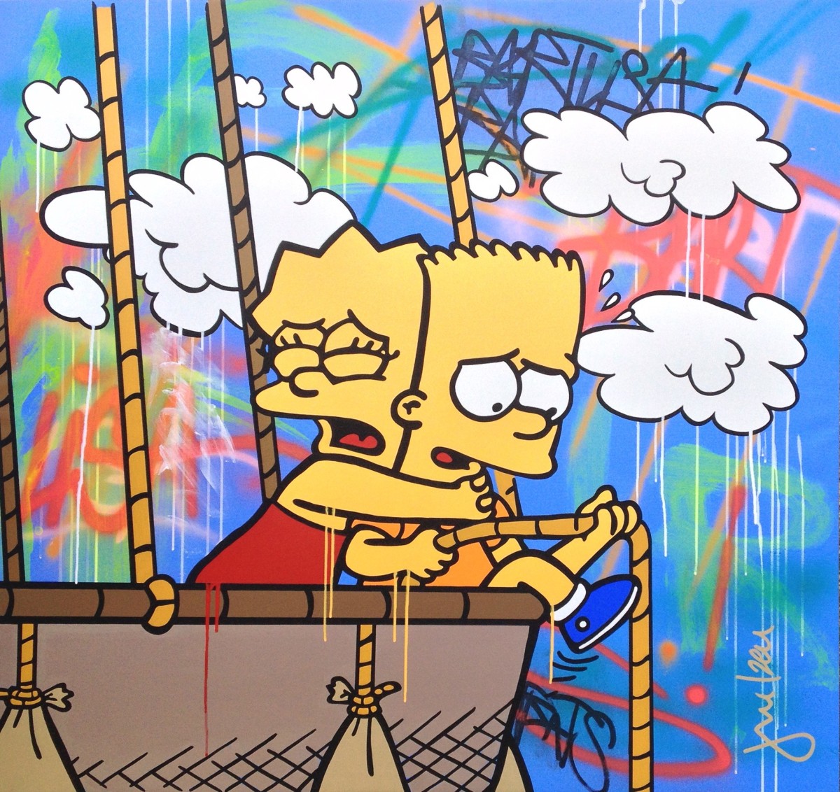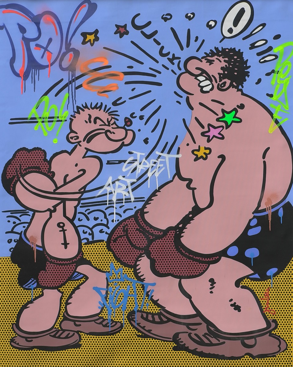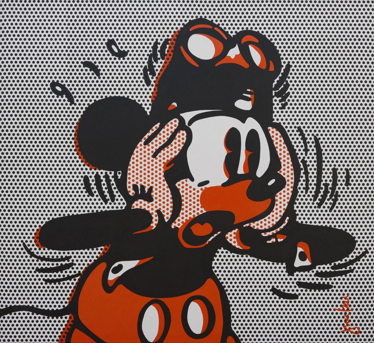 Il se tourne aussi vers les personnages de B D : Mickey, Les Simpson, Popeye, les supers héros, Dark Wador, Ses œuvres sont très colorées utilisant souvent des aplats de couleurs pures.