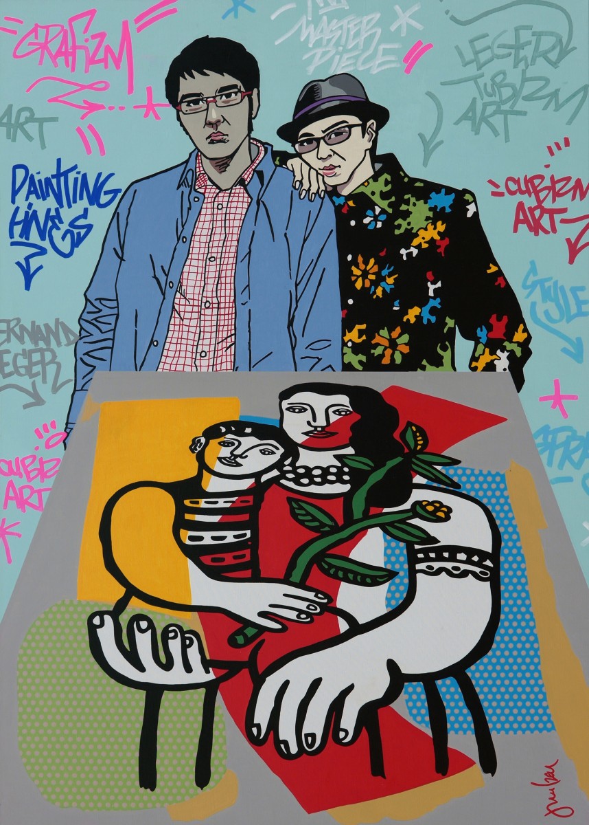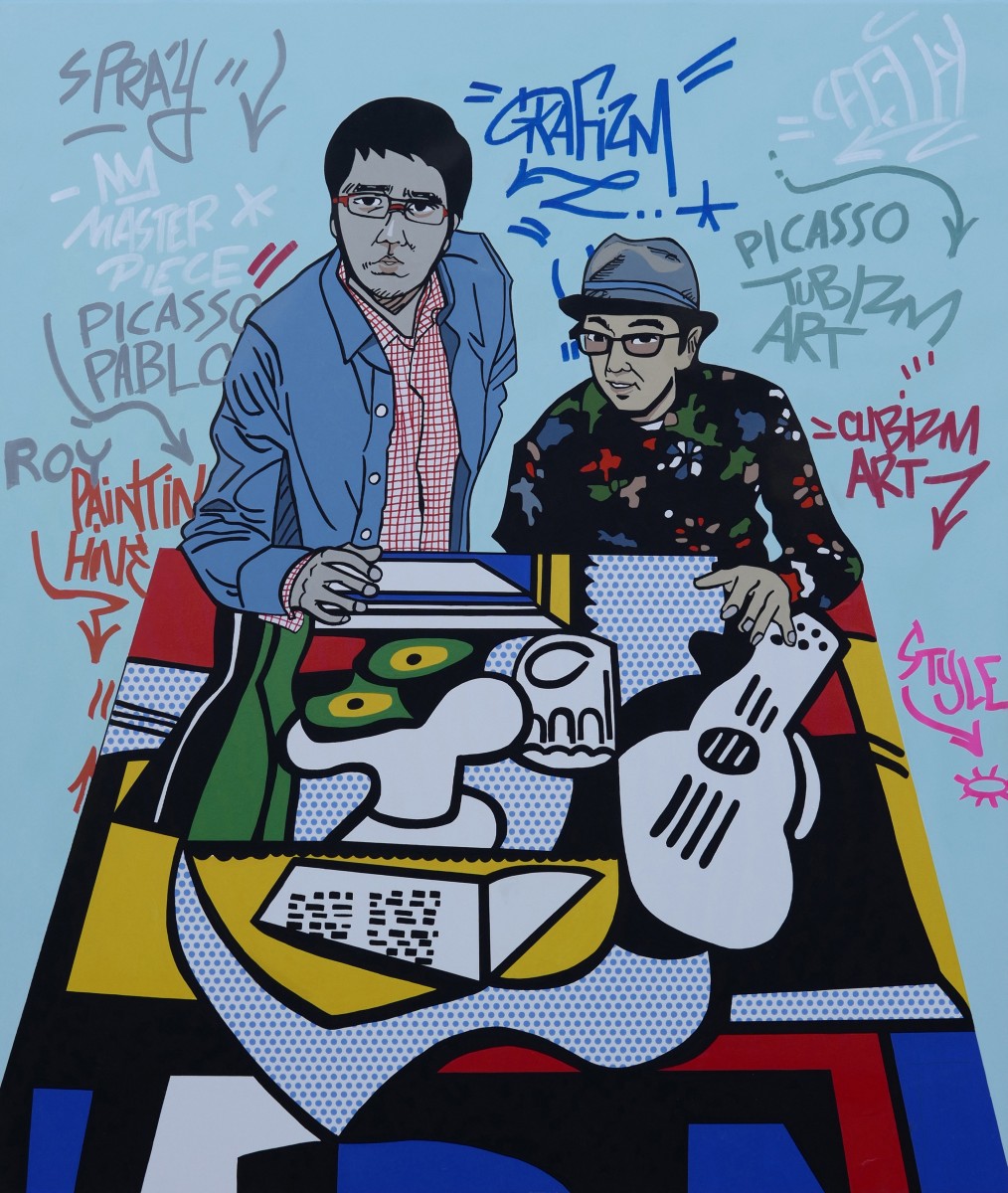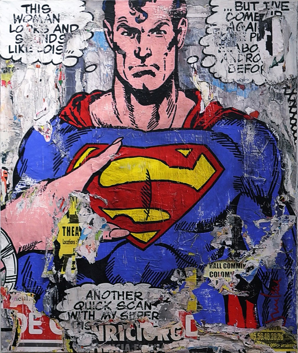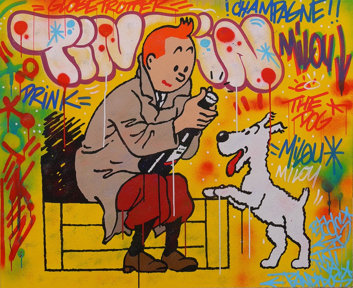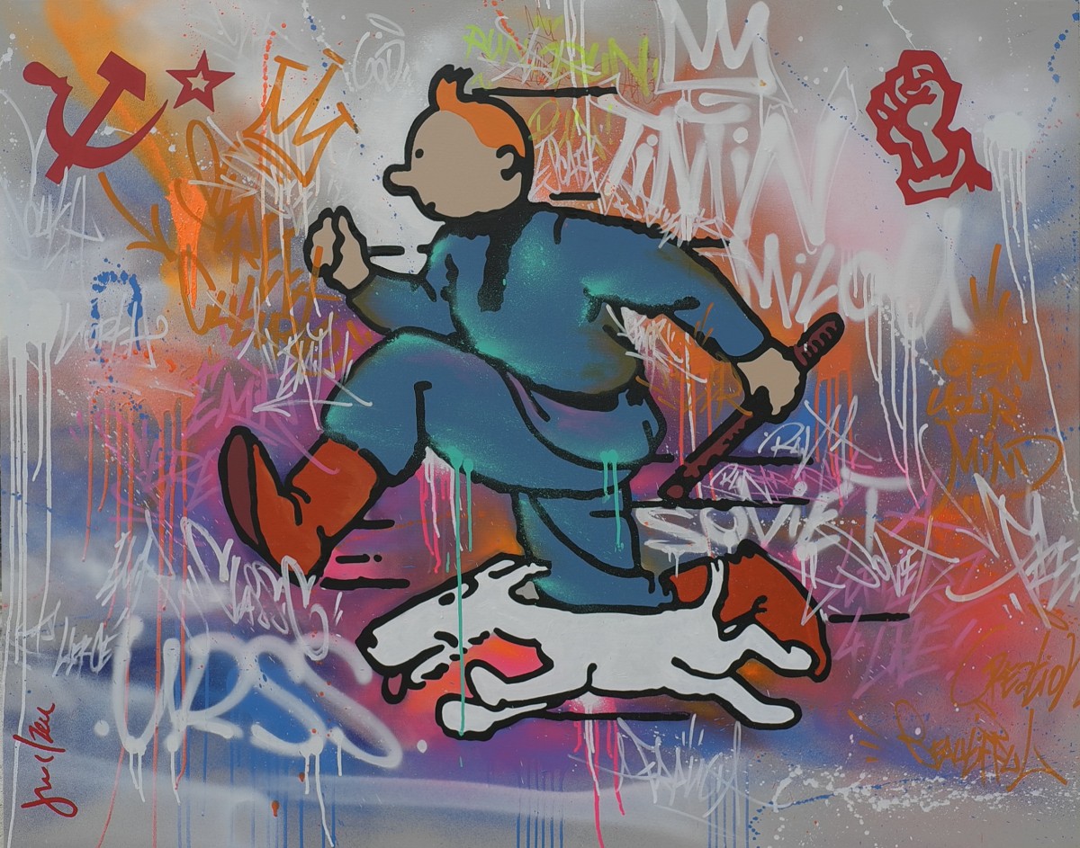 Il se tourne aussi vers les personnages de B D : Mickey, Les Simpson, Popeye, les supers héros, Dark Wador, Ses œuvres sont très colorées utilisant souvent des aplats de couleurs pures.